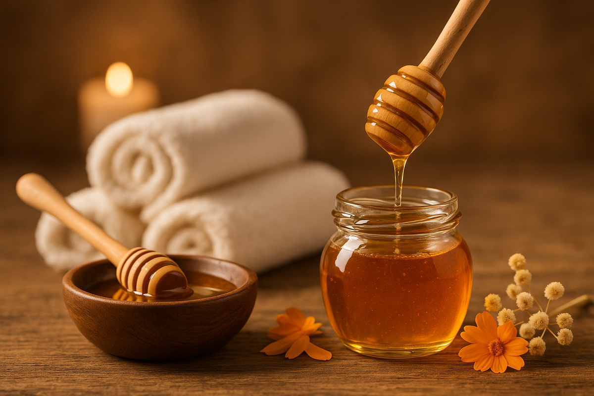 - Honig wird sanft aufgetragen und einmassiert – angenehm cremig.